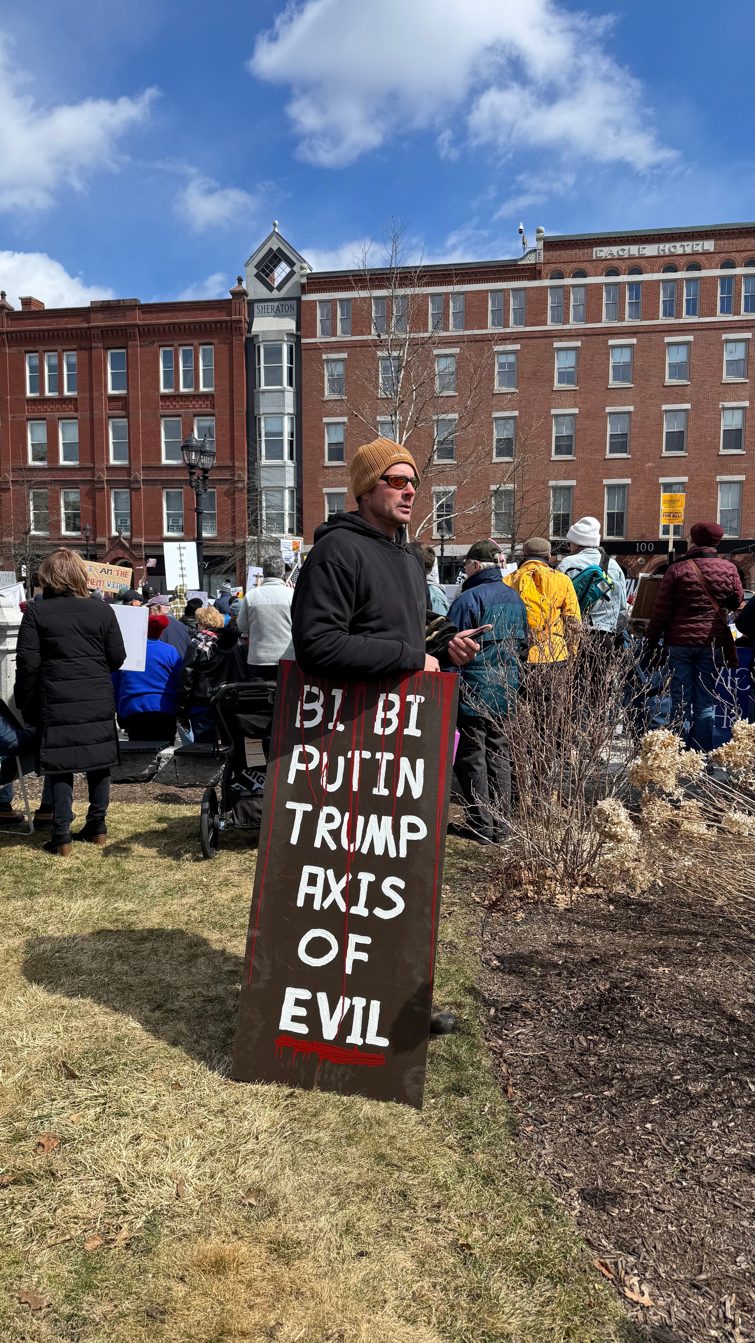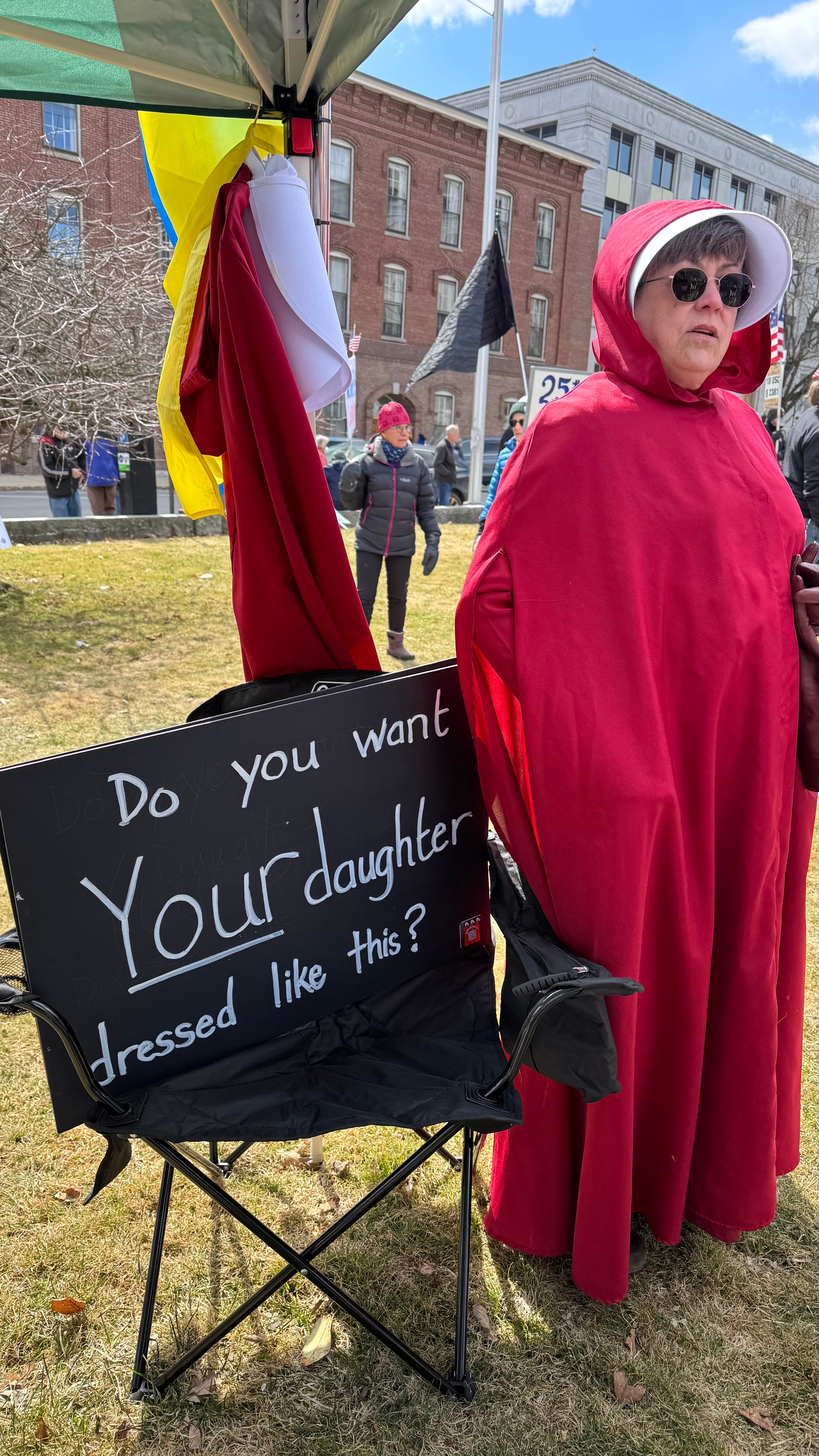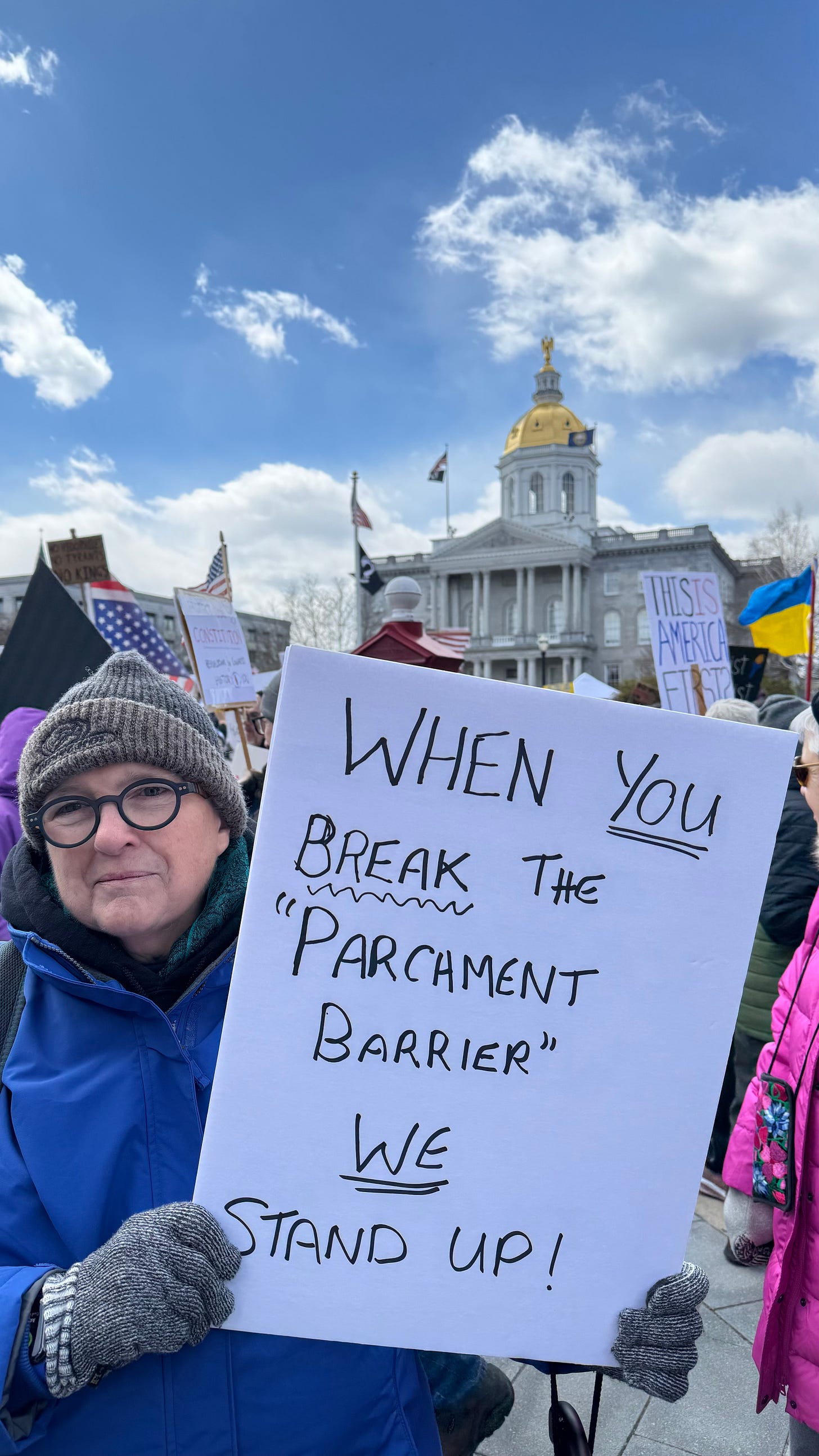 It was windy and chilly (35°F) in Concord, New Hampshire, where I joined a large crowd that filled the grounds outside the gold-domed State House and stretched down both sides of Main Street.
